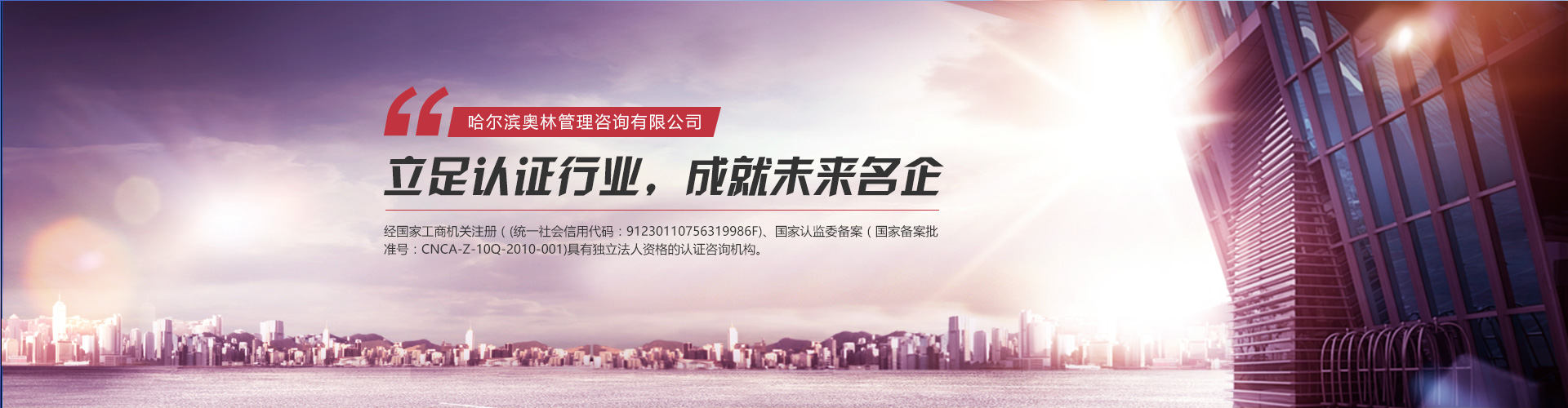 哈爾濱奧林管理咨詢有限公司(原新時代質(zhì)量認(rèn)證咨詢有限公司)成立于2000年9月,簡稱HOL,HOL是經(jīng)國家工商機(jī)關(guān)注冊(統(tǒng)一社會信用代碼:91230110756319986F)、國家認(rèn)監(jiān)委備案(國家備案批準(zhǔn)號:CNCA-Z-10Q-2010-001)具有獨立法人資格...